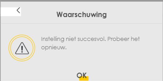 Maak je gebruik van ons witte Zyxel modem? Dan kun je een foutmelding krijgen bij het zelf instellen van het wifi-wachtwoord. Afhankelijk van je ingestelde taal, Nederlands of Engels zie je onderstaande melding: