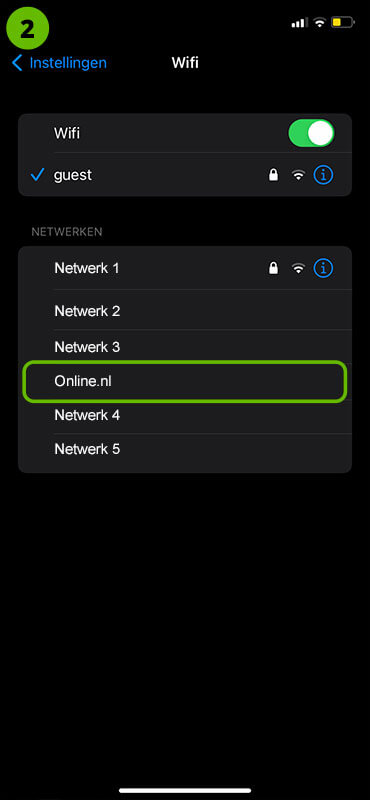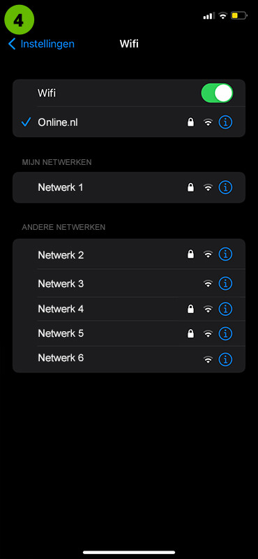 Netwerkband staat standaard op 2.4GHz, je kunt hier ook kiezen voor 5GHz.